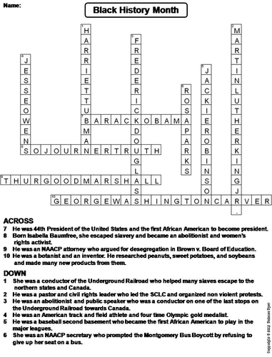Black History Month Worksheets Free, printable worksheets to learn about Black History Month. Over 1,500 ELA worksheet lesson activities. For class or home use. Click to get started. Black History Crossword Puzzle Free Printable for Kids and ... 07/06/2020 · Black History is American History and should be taught year-round. Of course, then the pandemic hit and my work productivity has been hit hard. It’s been hard to convince myself to get things done. However, I finally updated some things on this printable and it’s ready to go. Today I have a free Black History Crossword Puzzle Printable that ... Kids Games and Quizzes: Play Free Online Games Feb 28, 2017 · Play free, fun arcade-style math, word and puzzle games, including the Same Game, hangman, tic tac toe, math flashcards, falling blocks, quizzes and more. › black-history-month-printablesPrint Off These Black History Month Worksheets Dec 27, 2018 · Print the PDF: Famous Firsts Crossword Puzzle. Use this crossword puzzle to help students review the achievements of these ten African American men and women. Each clue describes an accomplishment that corresponds with a name from the word bank.