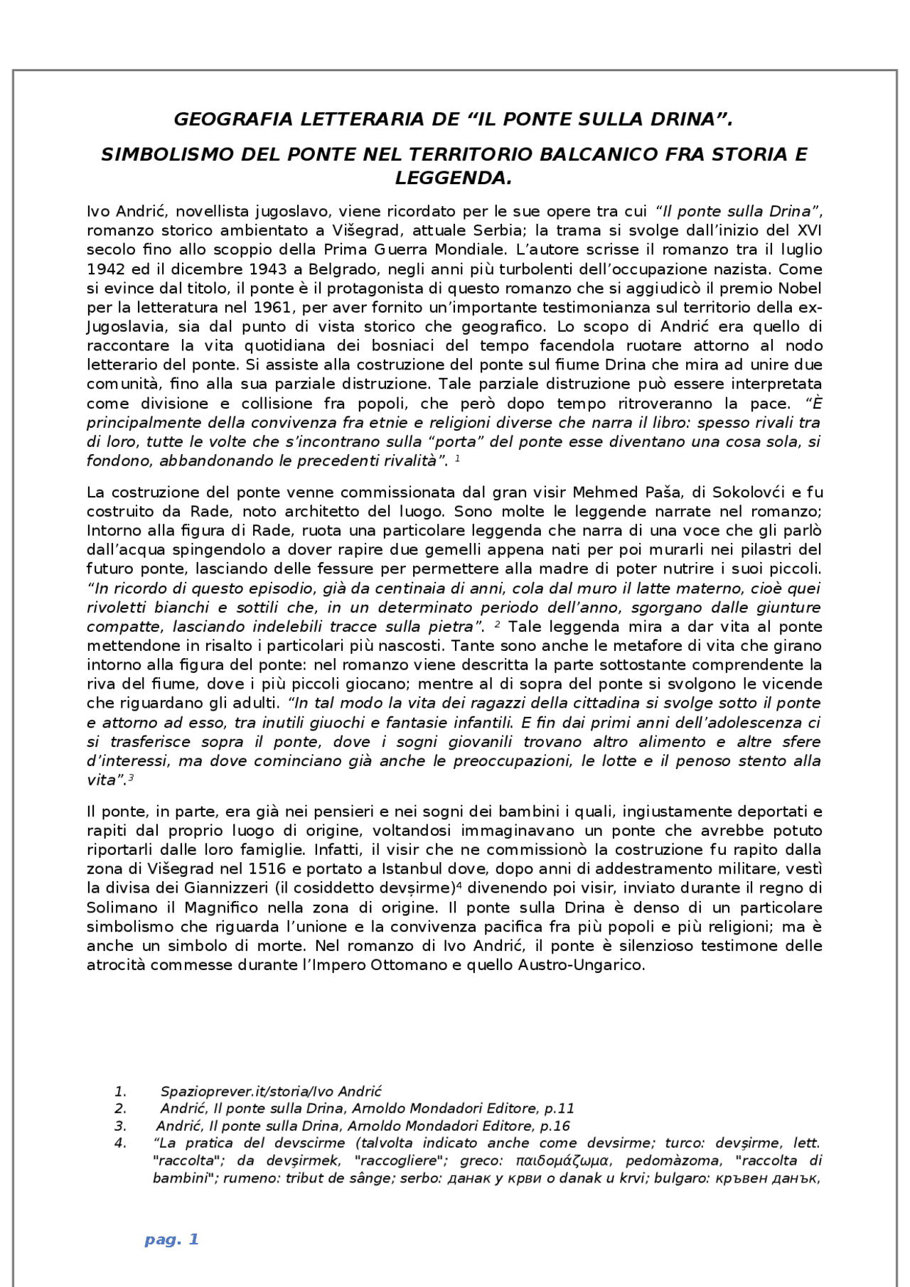 Ivo Andric, Il ponte sulla Drina Il ponte, per com'è presentato, è un monolite, un oggetto inamovibile e perfetto: come le onde del fiume Drina tentano invano di sommergerlo, così le vite dei Visegradesi si Sapkowski è un bravo scrittore polacco, ma è bravo scrittore perché bravo a scrivere (e a documentarsi), non perchè polacco.