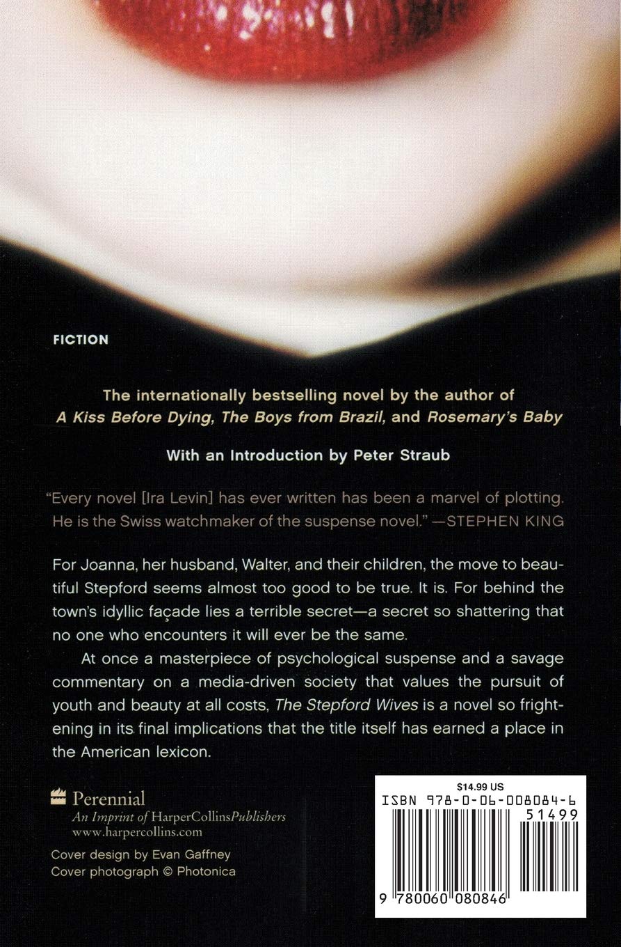 The Stepford Wives - Wikipedia The Stepford Wives is a 1972 satirical "feminist horror " [1] novel by Ira Levin. The story concerns Joanna Eberhart, a talented photographer, wife and young mother who suspects the submissive housewives in her new idyllic Connecticut neighborhood may be robots created by their husbands. The book has had two feature film adaptations, both using ...